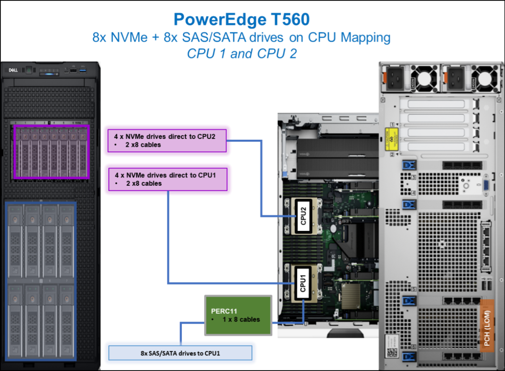 Up to 8 x 3.5-inch SAS/ SATA HDD + 8 x 2.5-inch NVMe SSD drives, max 240 TB